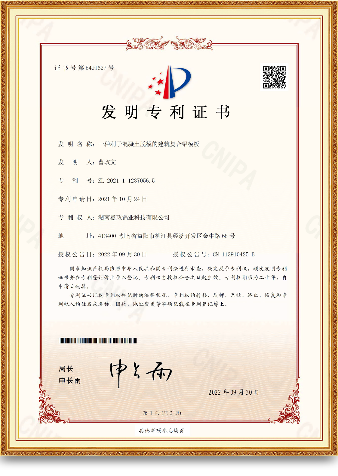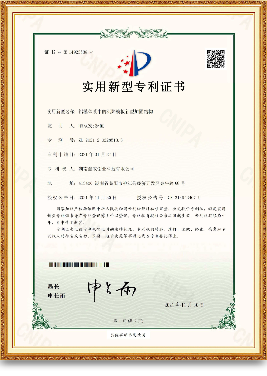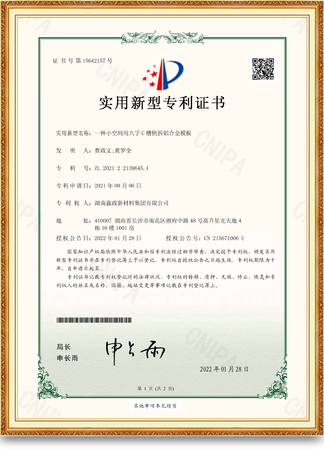 一種建筑施工縫的鋁合金模板安裝連接件及方法專利證書