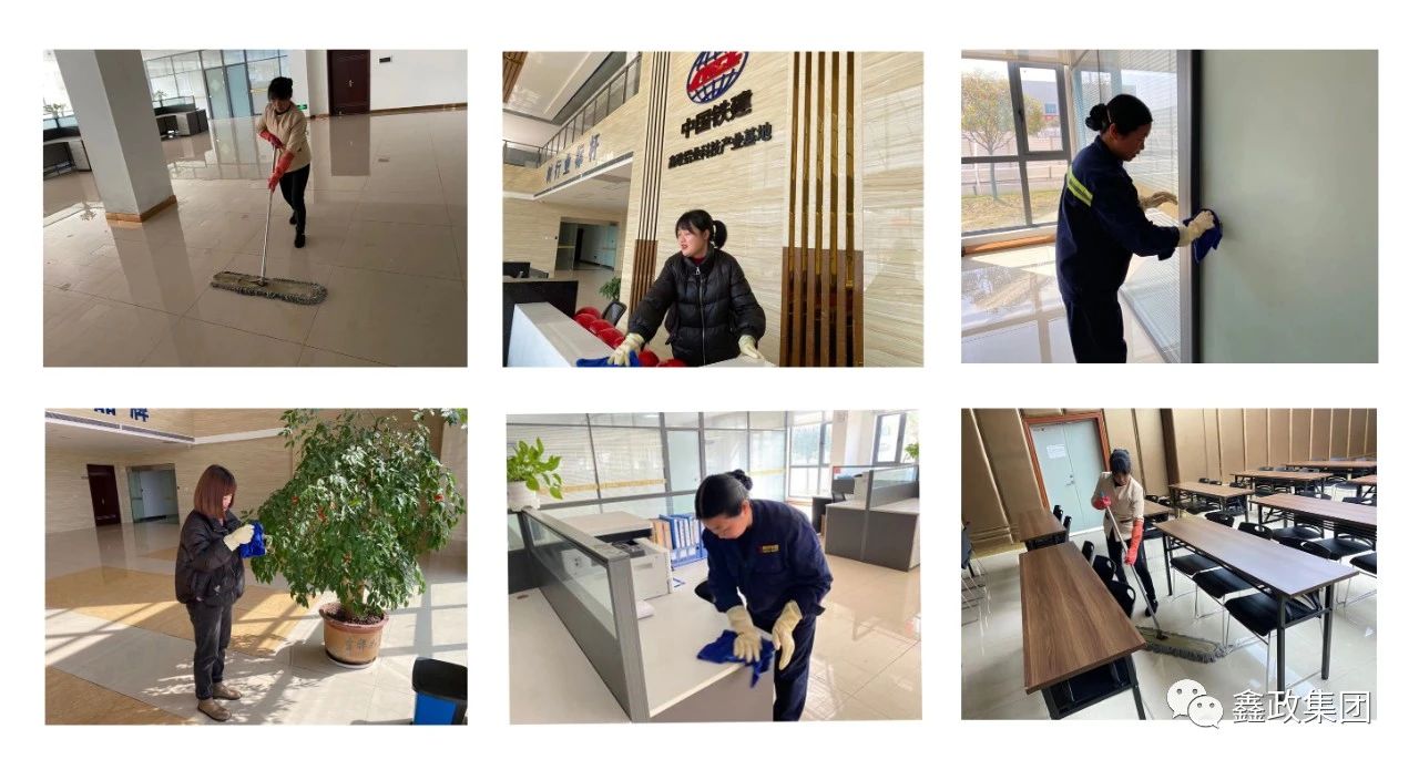 為迎接新春開工,當天上午,集團鑫政鋁業公司行政后勤組的工作人員們自發提前上班,只為給所有同事提供干凈舒適的辦公與生活環境。大家對公樓、宿舍等各個區域進行了嚴格的消毒、清掃、通風,把“送窮鬼”習俗展現得淋漓盡致。如此一來,寓意新的一年將遠離貧窮,富貴有余,生意興隆,事業發達!